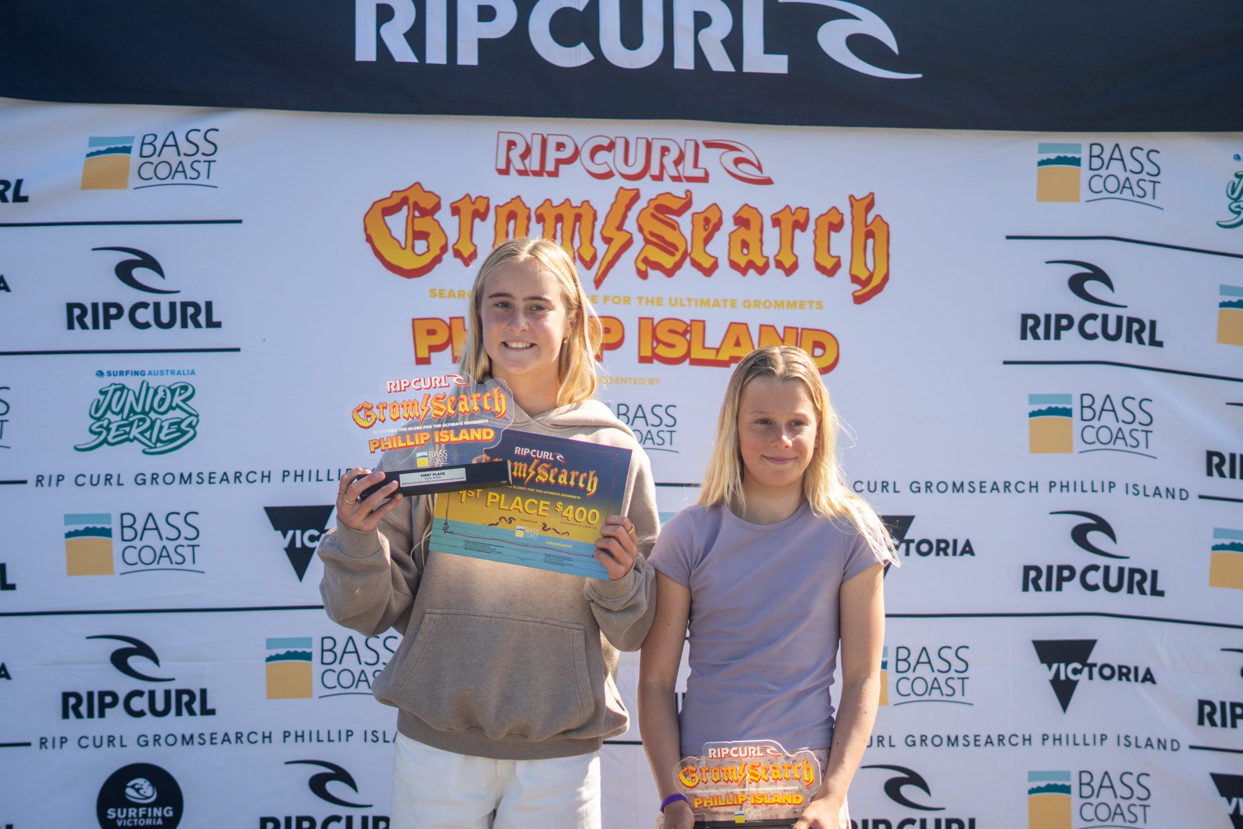 The Rip Curl GromSearch Phillip Island is presented by Rip Curl, Bass Coast Shire and Phillip Island and supported by the Victorian Government, Skin Health Australia, Surfing Australia, Beyond Coconut Water, Parklane Holiday Parks, Phillip Island Boardrider Club and Surf Better Now.